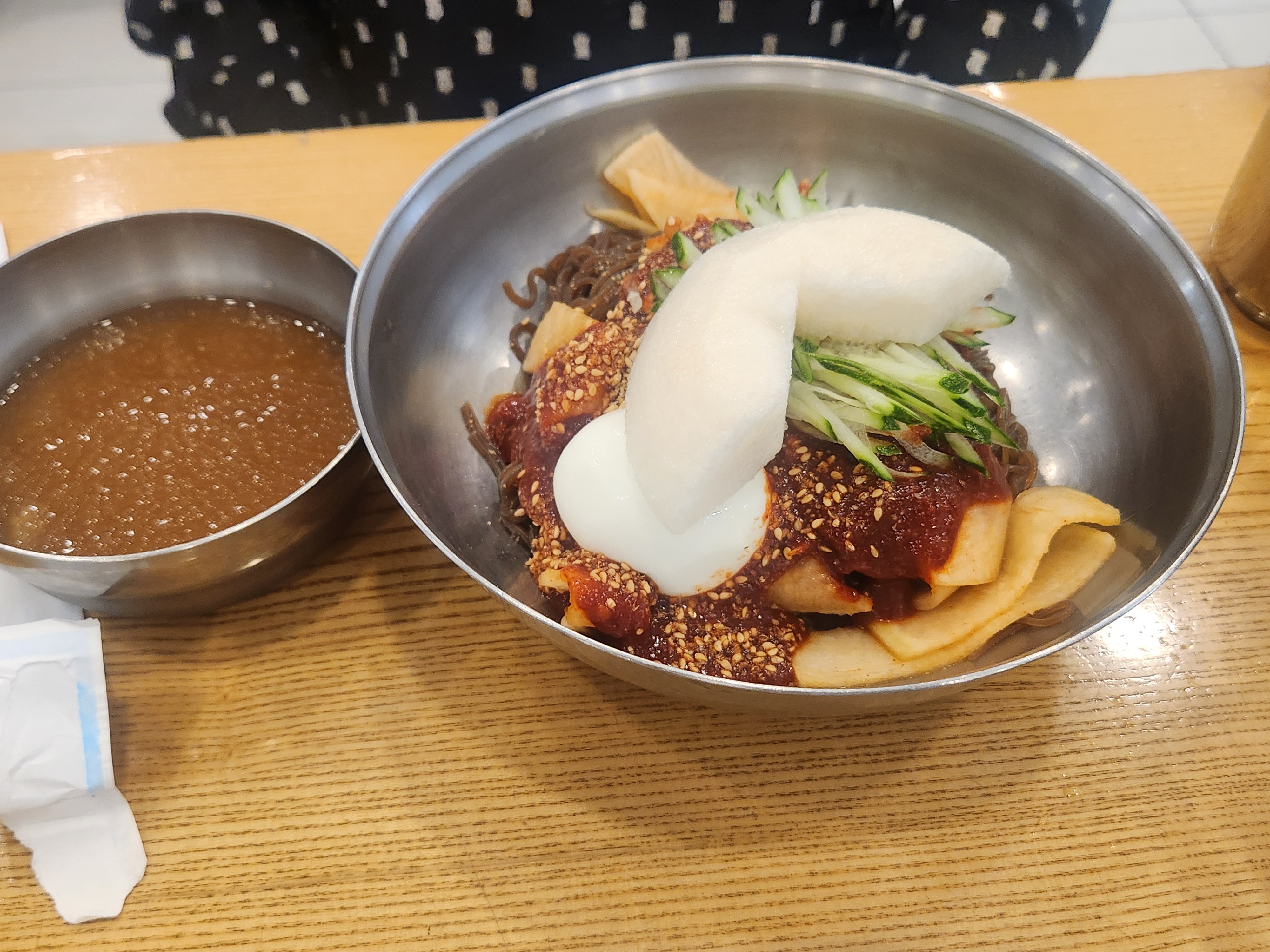 비빔냉면은 과하게 맵지 않아서 먹기 편했어요.
