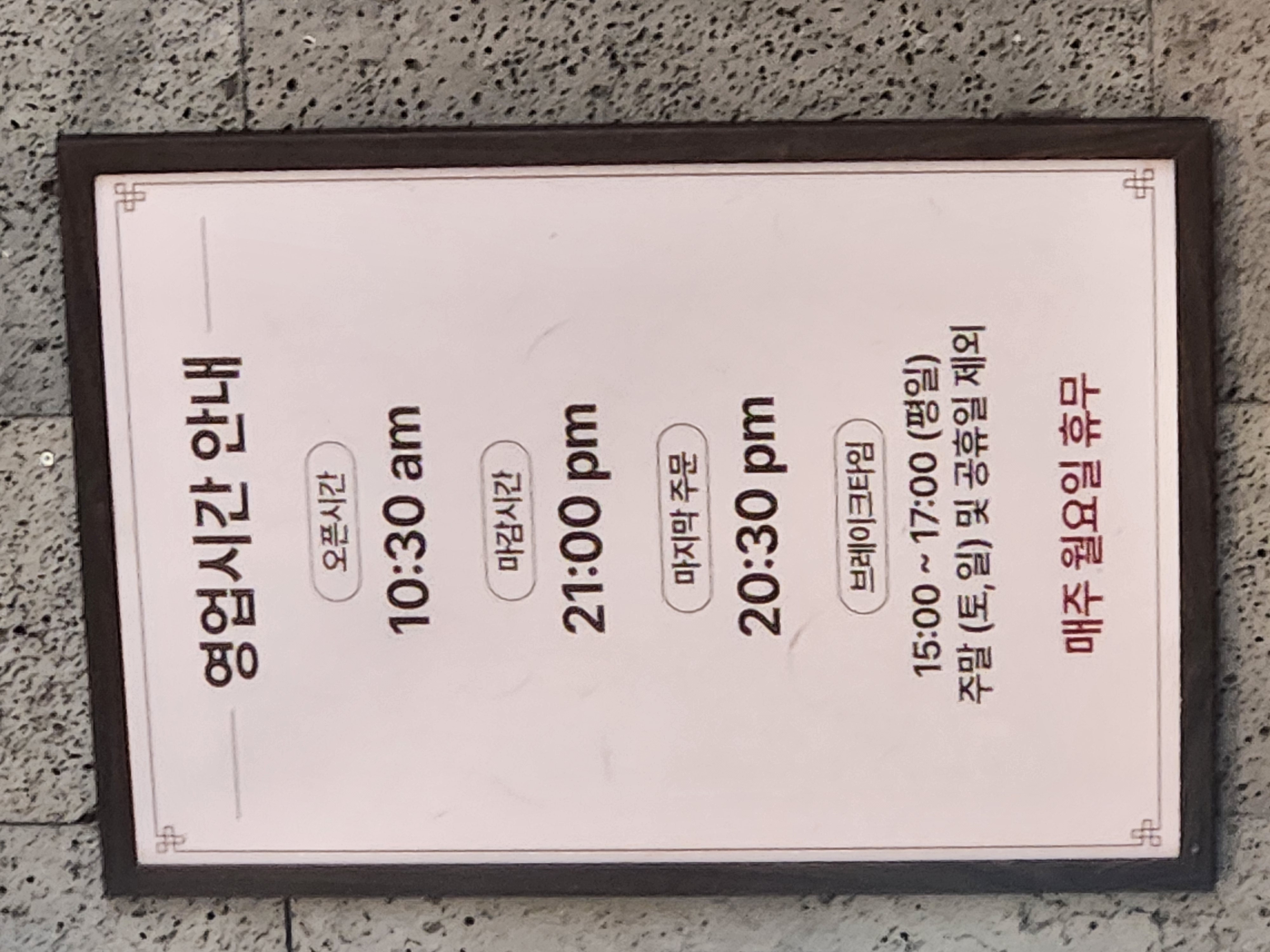 - 영업시간 : 10:30 ~ 21:00 (Last order 20:30)